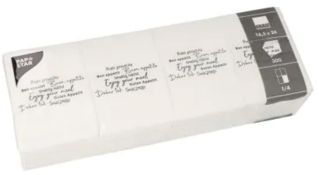 en papier tissu, pliage 1/4, avec impression en 8 langues,, dimension : 240 x 165 mm, idéal pour les plats à emporter, contenu: 300 pièces, (37407),