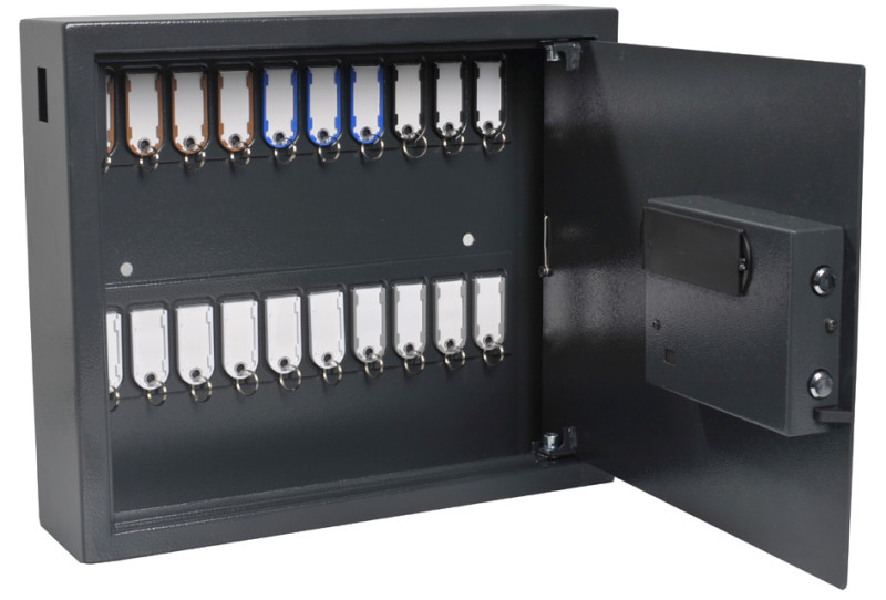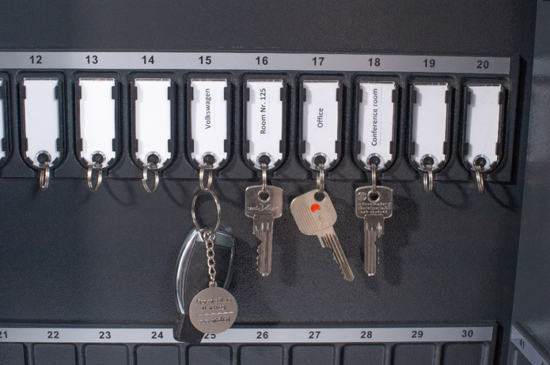pour porte-clés magnétiques, avec serrure électronique à, combinaison, gris foncé, en acier, mat, avec trou, d'insertion armoire fermée, serrure de sécurité avec 2 clés, comprises, livré avec 10 porte-clés, instructions de montage, (8015641)