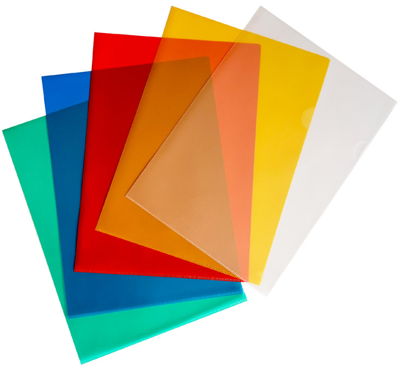 ouvert en haut et à droite, avec encoche de préhension,, n'altère pas les documents, assorti dans les couleurs:, bleu, vert, rouge, jaune et transparent, contenu: 50 pièces, (8020645)