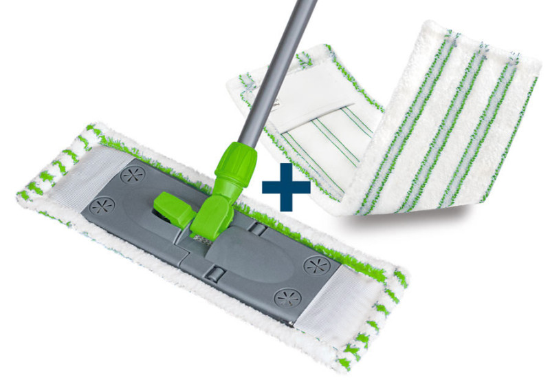 •contenu de la livraison: 1 porte-serpillière avec manche télescopique, 2 serpillières