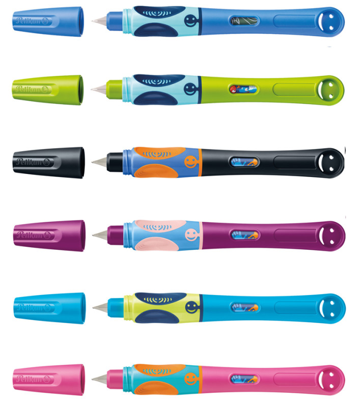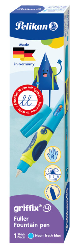 stylo plume d'apprentissage de l'écriture avec zone de, préhension ergonomique, couleur du tracé: bleu roy, taille, de plume: L, couleur: rose/turquoise, dans une boîte pliante, (820257),