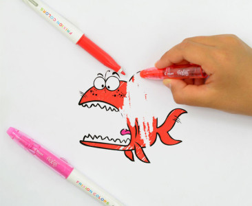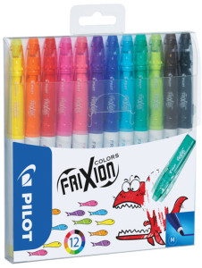 •encre thermosensible: la chaleur (env. 60°C) permet d'effacer le trait - le froid (env. -10°C) fait revenir le trait effacé. Le dessin revient.