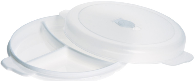 blanc/transparent, en PP, couvercle transparent, assiette, blanche, petite valve dans le couvercle pour évacuer la va-, peur, à usage alimentaire, compatible lave-vaisselle, micro-, ondes, congélateur, dimensions: (L)276 x (P)235 x (H)51 mm, (31050800)