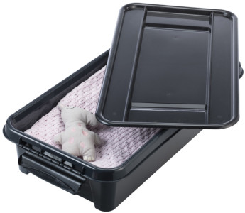 dessous le lit, boîte et couvercle, couleur: noir, clips de, fermeture solides, matériau: plastique recyclé, excellente, qualité, dimensions : (L)395 x (P)725 x(H)170 mm, (27830801),