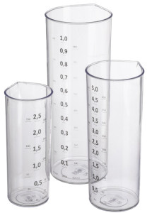 Material: SAN, jeder Messbecher hat eine Liter-, Zucker-, und Mehlskala in 5 Sprachen, einfaches Ausgießen durch, Ausgusslippe, platzsparend ineinander stapelbar, je 1, Messbecher 0,25 Liter, 0,50 Liter und 1,0 Liter, (30040800)