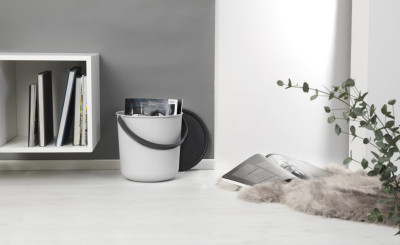 Plast team Seau de rangement AKITA, 53 litres, gris nuage avec couvercle, couvercle et anse : noir, dimensions :(L)446 x (P)445 x (H)480 mm, matériau : PP recyclé, (60820800)