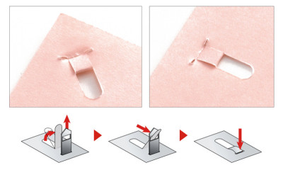 •le bout de papier estampépendant l'agrafage passe automatiquement par une perforation formée par ce même agrafage
