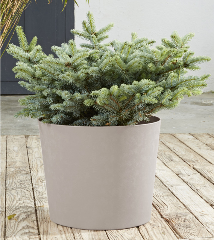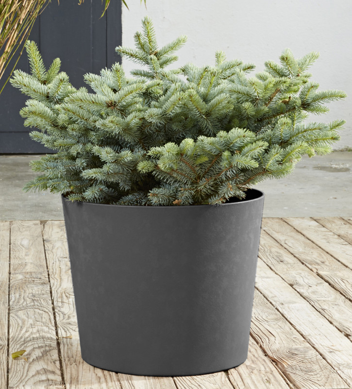 hauteur: 320 mm, volume de terreau: 30 L, aspect minéral, naturel, en plastique recyclé à 100%, robuste et durable,, peut aussi servir de cache-pot, fond avec relief pour la, stabilité et l'aération, (022056 G.CA SX6)