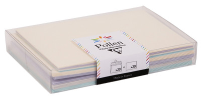 format cartes: 110 x 155 mm, format enveloppes: 114 x 162 mm, assorti en vert jade, gris perle, glycine, ivoire, contenu: 20 cartes + 20 enveloppes, (20919C),