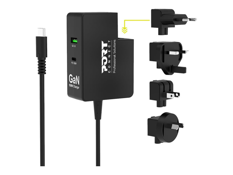 PORT Connect - Adaptateur secteur - 100 Watt - 5 A - PD, QC - 3 connecteurs de sortie (USB, USB-C)