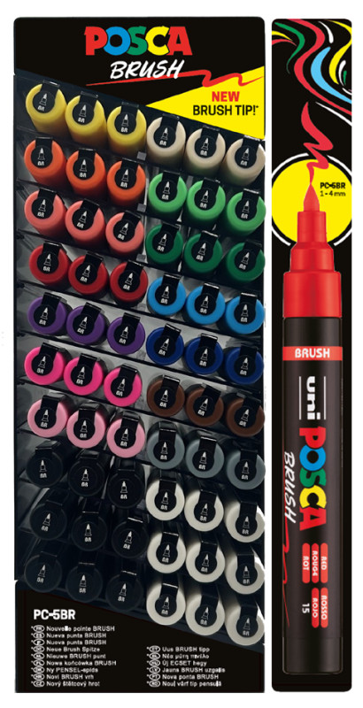 pointe mousse semi-flexible, largeur de tracé: 1,0 à 4 mm,, résistant à la lumière, à l'eau et aux rayons UV, encre à, base d'eau, contenu: 60 pièces, (CDU POSCA 01)