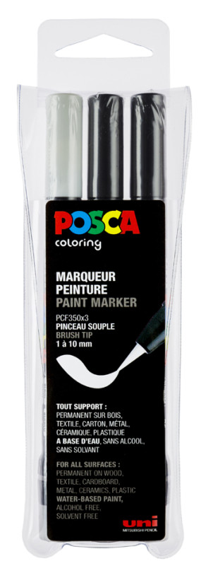 pointe pinceau, largeur de tracé: 1 -10 mm, indélébile, dans, un étui plastique pegbordable, assorti dans les couleurs:, 2x noir, 1 x blanc, contenu: 3 marqueurs, (PF-350/3A ASS08)
