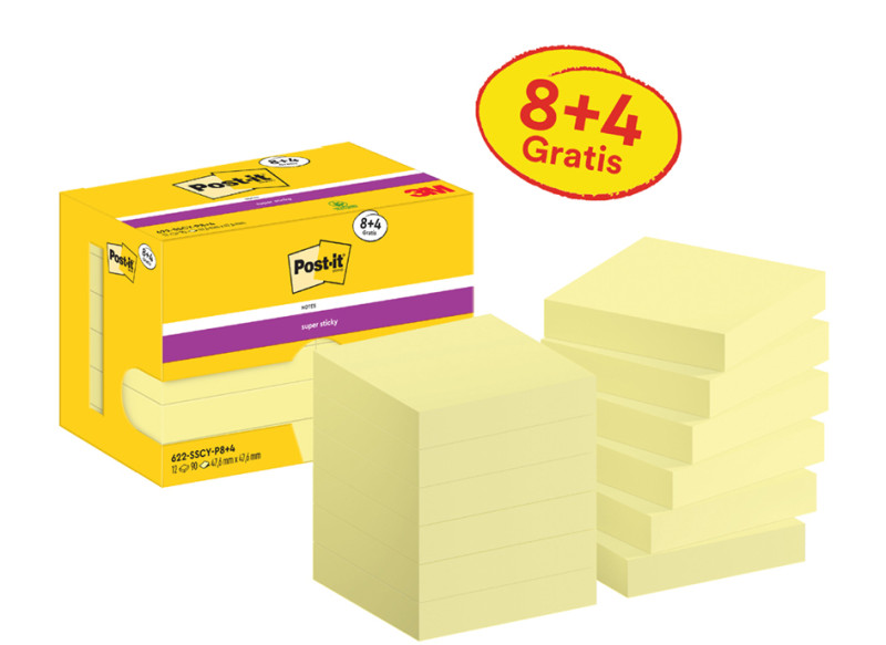 8+4, jaune, 90 feuilles/bloc, certifié PEFC,, contenu: 12 blocs dans un distributeur carton, (622-SSCY-P8+4 / 7100290178), , pack promotion