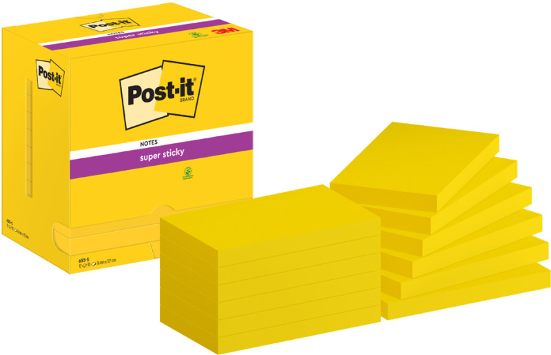 127 x 76 mm, jaune narcisse, 90 feuilles / bloc, certifié, PEFC,, contenu: 12 blocs dans un distributeur carton, (655-S / 7100290188),