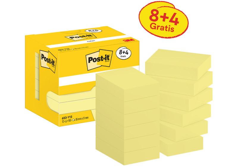 100 feuilles/bloc, dans un carton distributeur pratique,, adhérence garantie, s'enlève sans laisser de traces, contenu: 20 blocs, (654-CY-VP20 / 7100199991 / BP892),