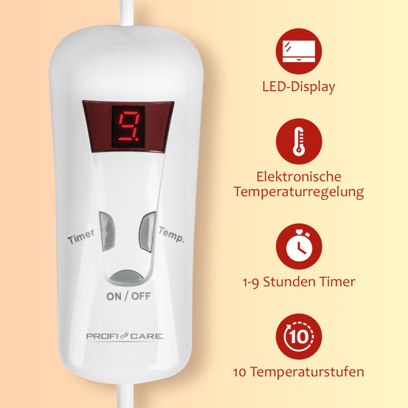 chaleur durable et agréable, 10 réglages de température,, lavable en machine à 40 degrés max., minuterie, arrêt de, sécurité, commande de haute qualité, dimensions: env. 130 x, 180 cm, 100 watts, (330610)