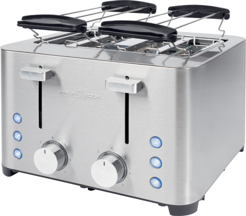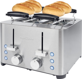 corps en acier inoxydable, 2 tiroirs ramasse-miettes, fente, extra-large pour les tartines (40 mm), 2 éléments de, commande séparés, fonction dégivrage/réchauffage/arrêt, rapide, degré de brunissage, 220-240 V, 50/60 Hz, 1260-1500, (501252)