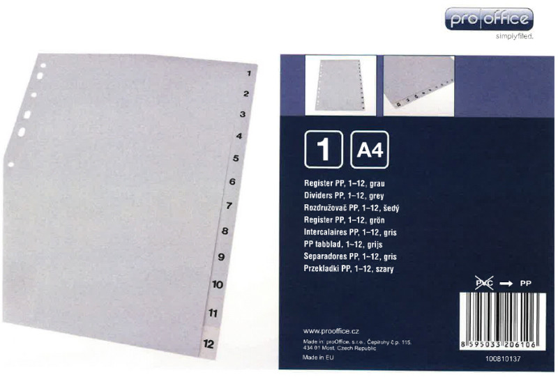 touches, en PP, épaisseur: 0,12 mm, gris, 11 perforations, (10071207-001), , ,