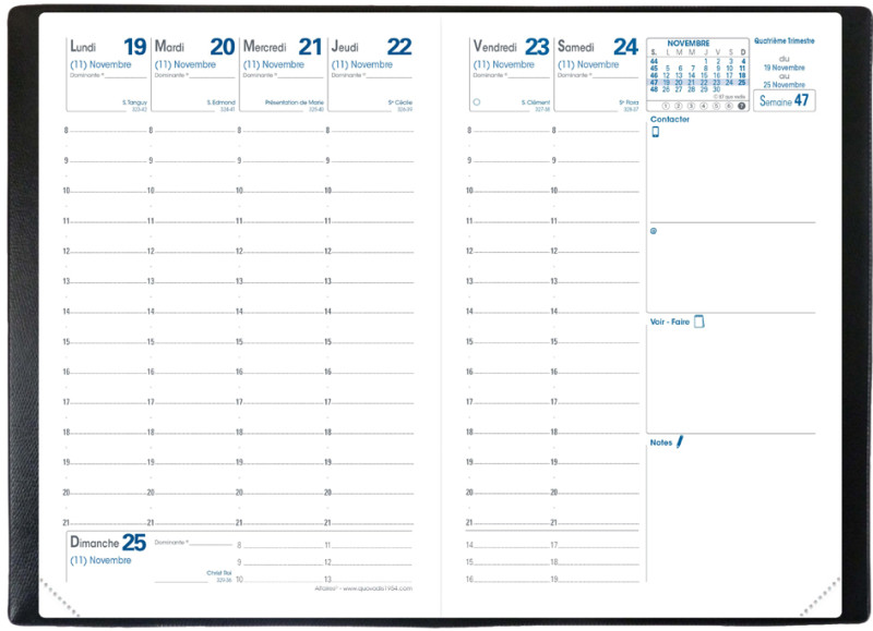 ---------------------- Pour le Marché: F -------------------, 100 x 150 mm, 1 semaine/2 pages, décembre à décembre,13 mois, couverture impala plastique grainé assorti, avec répertoire, en paquet de 10 pièces, (004184Q)