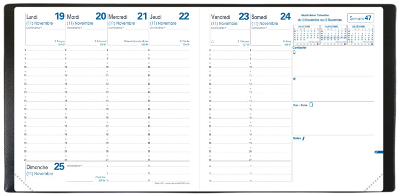 -------------------- Pour le Marché: F ---------------------, 1 semaine sur 2 pages, de décembre à décembre, 13 mois,, couverture Impala plastique, reliure cousue, papier blanc,, impression bicolore, atlas couleur, (014046Q)