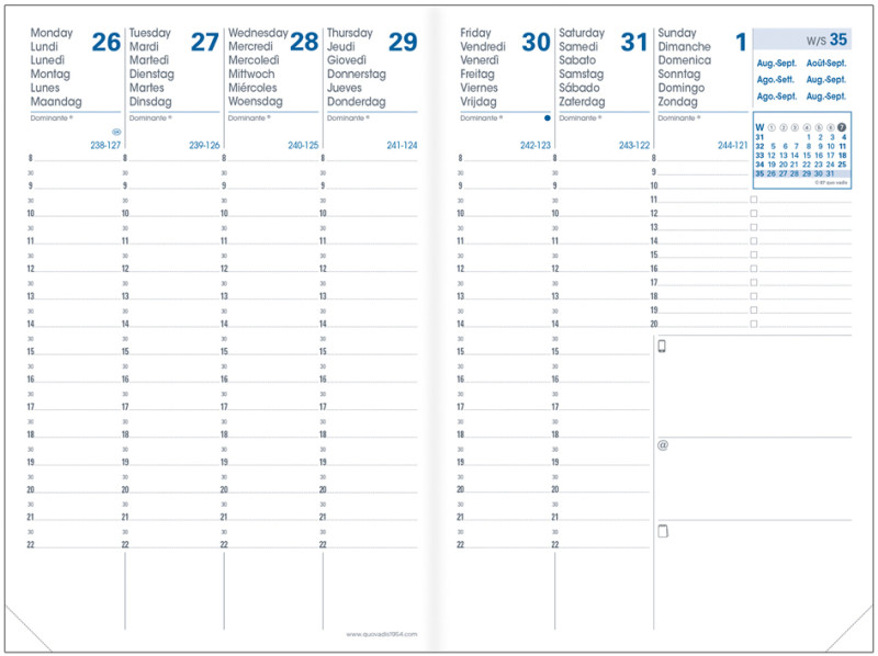 -------------------- Pour le Marché: F ---------------------, 150 x 210 mm, 1 semaine sur 2 pages, de septembre à décembre, 16 mois, couverture Everest finement rayée, fermeture, élastique, papier blanc, multilingue, pochette à soufflet, (149003Q)