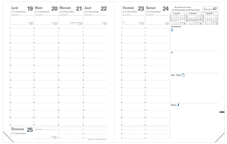 ------------------- Pour le Marché: F ----------------------, 1 semaine sur 2 pages, période: décembre à décembre, 13 mois, couverture plastique grain 2 tons, reliure cousue, papier, blanc, impression bicolore, atlas couleur, avec répertoire, (016592Q)