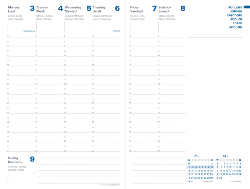 -------------------- Pour le Marché: F ---------------------, 210 x 270 mm, 1 semaine sur 2 pages, de: décembre à décembre, 13 mois, couverture finition surpiqûre, reliure cousue,, papier 100 % recyclé, atlas couleur, répertoire amovible, (016589Q)