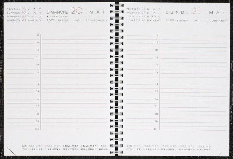 ---------------------- Pour le Marché: F -------------------, 1 semaine/2 pages, période: janvier à décembre, 12 mois,, papier blanc, reliure brochée, tranche dorée, dimensions:, 143 x 85 mm, (830017Q / INT2001)