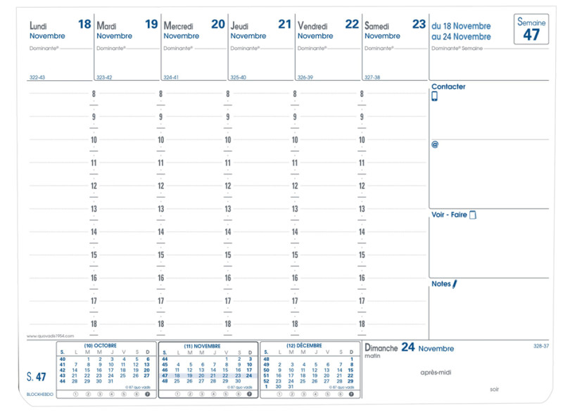 --------------- Pour le marché: F -------------------------, 1 semaine sur une page, période: janvier à décembre, 12 mois, 196 x 145 mm, horaire de 8 à 18 heures, papier blanc,, impression bicolore, (057001Q)