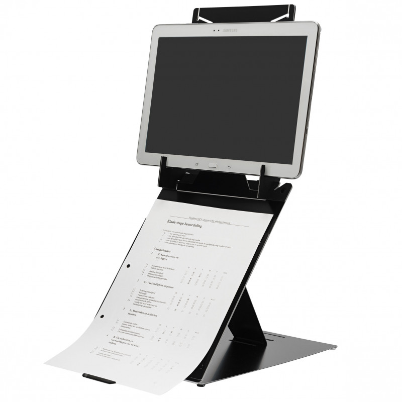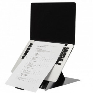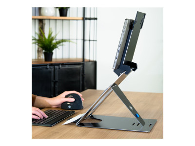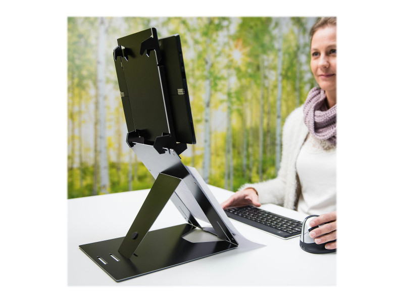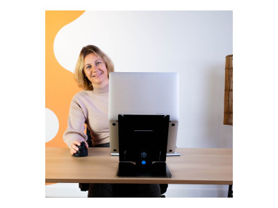 Le support pour ordinateur portable et tablette R-Go Riser Duo peut être utilisé pour surélever votre ordinateur portable et votre tablette. Le support est facilement réglable en hauteur sur 4 positions, de sorte que vous pouvez toujours travailler à hauteur des yeux. De cette façon, la tête est dans une position naturelle et réduit la tension des muscles du cou et des épaules. Le R-Go Riser Duo est ultra fin et léger : idéal pour le transporter dans votre sac !