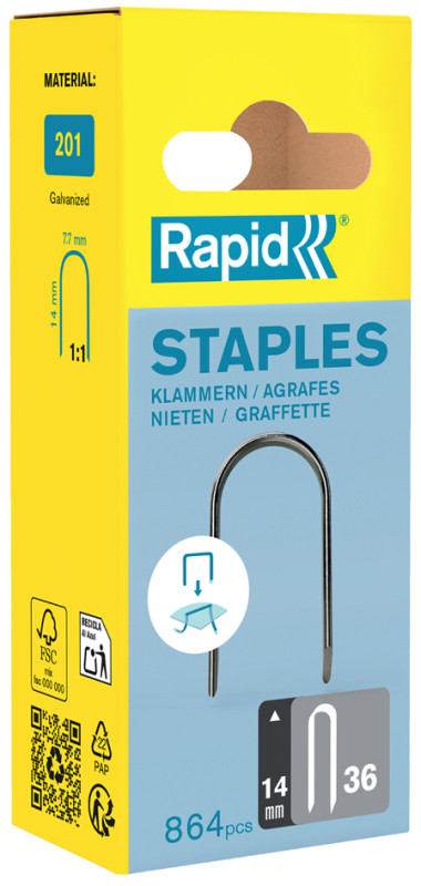 avec coupe de scie, agrafe à fil plat spécialement conçue, pour la fixation de câbles basse tension jusqu'à 50 V,, dans un carton avec perforation euro, contenu: 864 pièces, (40109626)