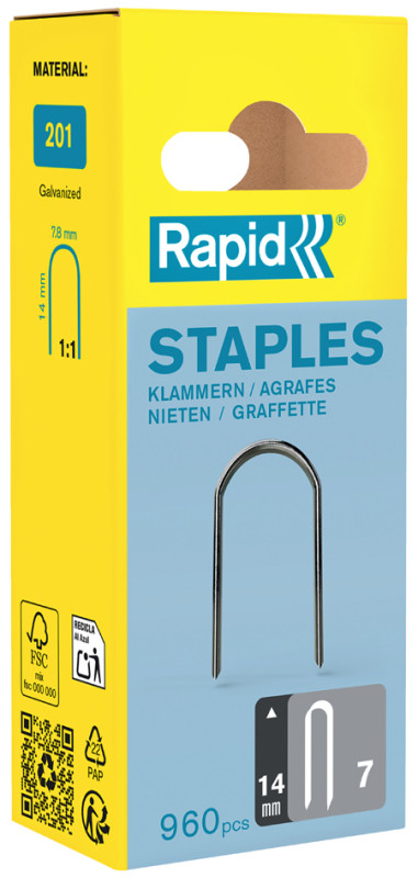 avec coupe de scie, agrafe à fil plat spécialement conçue, pour la fixation de câbles basse tension jusqu'à 50 V,, dans un carton avec perforation euro, contenu: 960 pièces, (40109523)