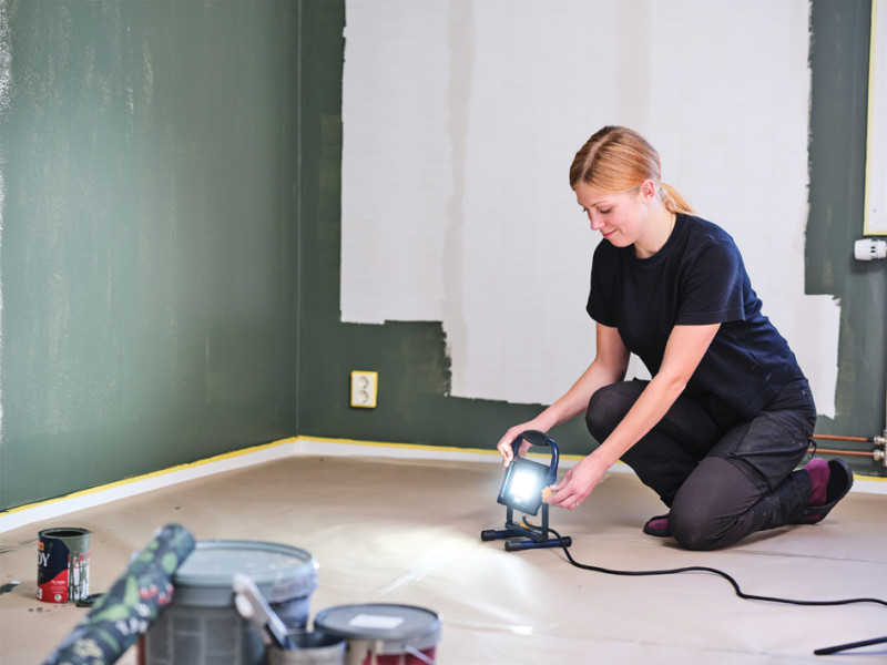 Lichtstrom: 2.000 Lumen, Farbtemperatur: 6.000 Kelvin,, IP65, mit Griff, schwenkbarer Kopf, Kabellänge: 2,5 m,, Eurostecker, Maße: (B)205 x (T)162 x (H)269 mm, enthält eine, Lichtquelle der Energieeffizienzklasse E, (5001729)