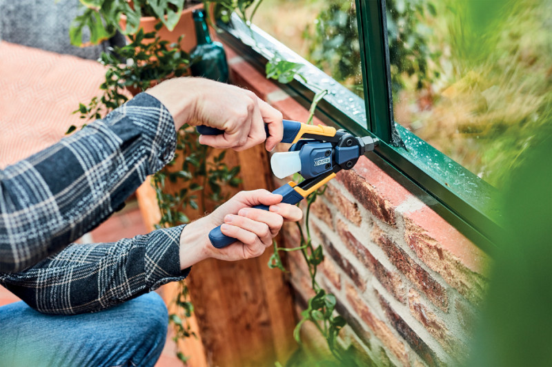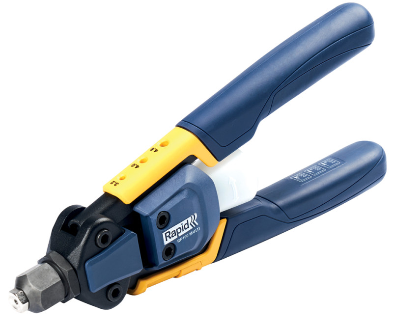 pour rivets de 3,2 à 4,8 mm de tous matériaux, pied à, coulisse intégré, fonction d'accrochage à la ceinture,, réceptacle, mâchoires en métal, poignée avec revêtement, souple, dans un carton, (5001721)