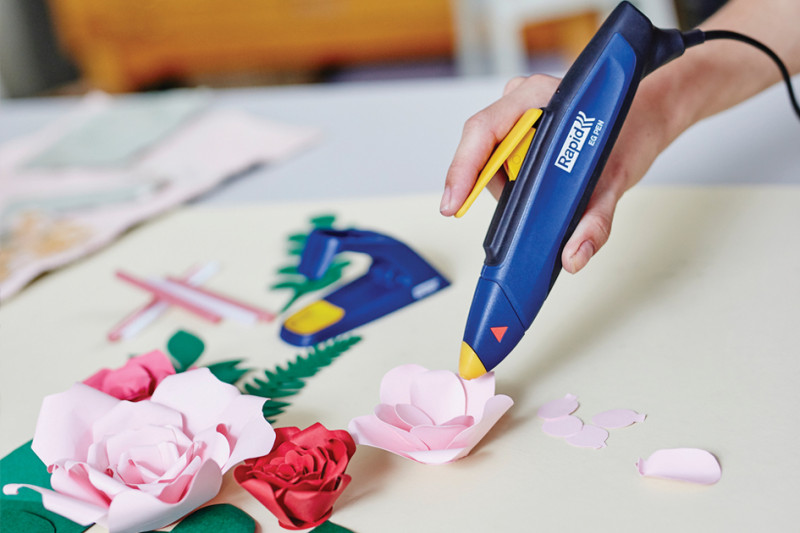 pistolet en forme de stylo, temps de chauffe: 60 secondes,, voyant lumineux de mise en marche, pour bâtons de colle de, 7 mm de diamètre, 10 watts, prise euro, incl. support & bac, collecteur, dans un carton, (5001704)