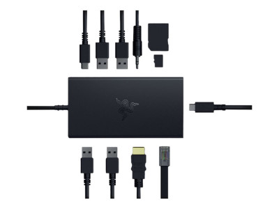 La station d'accueil Razer est conçue pour améliorer la connectivité et les performances grâce à un format compact et un câble USB-C intégré de 20 cm. Elle prend en charge diverses interfaces, notamment HDMI, Gigabit Ethernet et plusieurs ports USB, ce qui en fait une solution polyvalente pour les configurations domestiques et professionnelles. Avec sa structure en aluminium de haute qualité, cette station d'accueil s'intègre parfaitement dans les environnements technologiques modernes. Grâce à la technologie USB-C Power Delivery, qui permet de fournir jusqu'à 85 W de puissance, les utilisateurs peuvent recharger leurs appareils tout en profitant d'un transfert de données fluide et d'une sortie vidéo en résolution 4K avec un taux de rafraîchissement de 60 Hz.