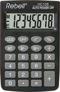 affichage LC à 8 chiffres, fonctionne avec piles, opérations, arithmétiques de base, calcul de pourcentage, fonction de, mémorisation, dimensions: (L)58 x (P)88 x (H)8 mm,, poids : 31 g, (RE-HC108)