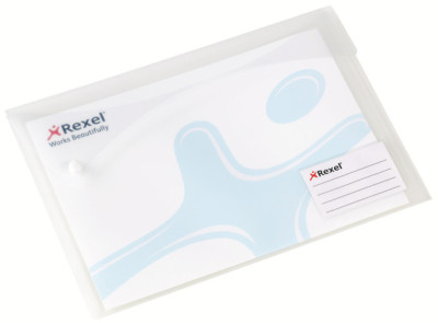 translucide, en pp, bouton-pressoir, compartiment, pour cartes de visites sur la face avant, capacité: 100, feuilles, dimensions: (L)240 x (H)335 mm, en paquet de 5, pièces, (2101161)