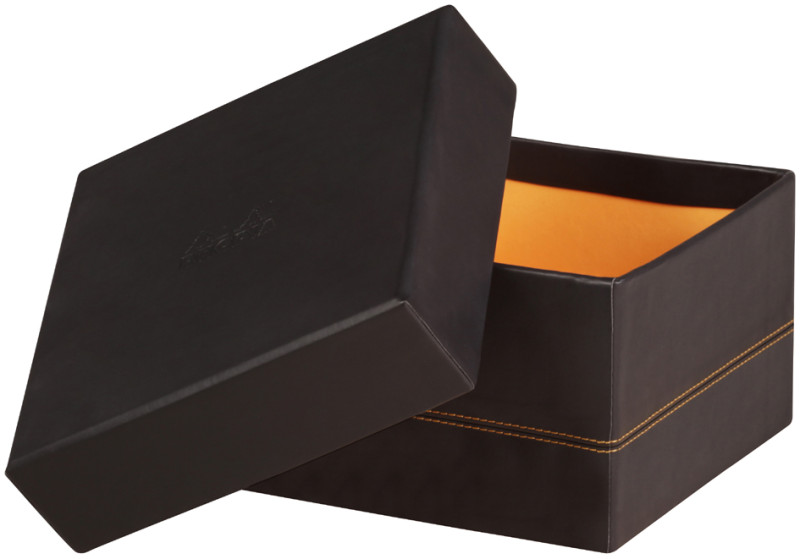 boîtes gigognes, logo RHODIA embossé, le haut + couvercle noir, le bas orange, contient: 5 boîtes, (118886C),