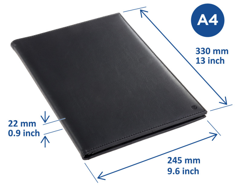 pochettes, noir, A4, mécanisme rillstab:les barres du milieu, maintiennent les pochettes, surface: cuir artificiel,, pochettes: PP, 50 mu, transparent, pas réfléchissant,, intérieur: case à pochette pour formats A5/A4 et 2 pochettes, pour cartes de visite, avec bloc-note (98034)