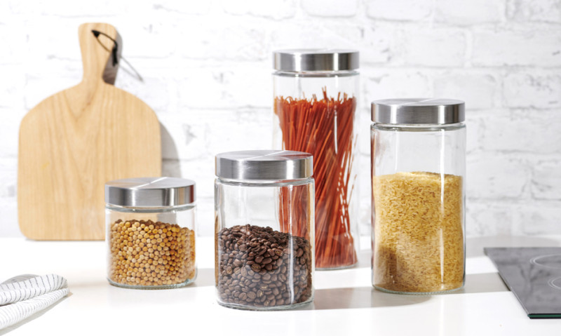 en verre, avec couvercle à visser en acier inoxydable,, lavable au lave-vaisselle, en paquet de 4 pièces, (812091),