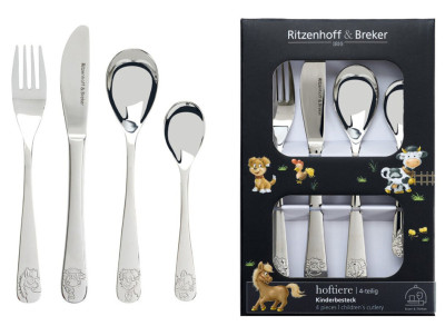 en inox de qualité supérieure, avec motifs animakliers,, contenu: couteau, fourchette, cuillère et petite cuillère, (819144), ,
