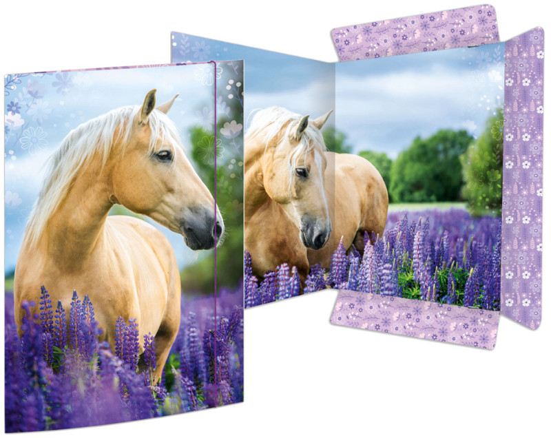3 rabats, élastique de fermeture coloré,, en carton solide, dimensions: (L)310 x (H)440 mm,, pour des dessins et des documents en format A3,, impression intérieure et extérieure brillante, (45381)