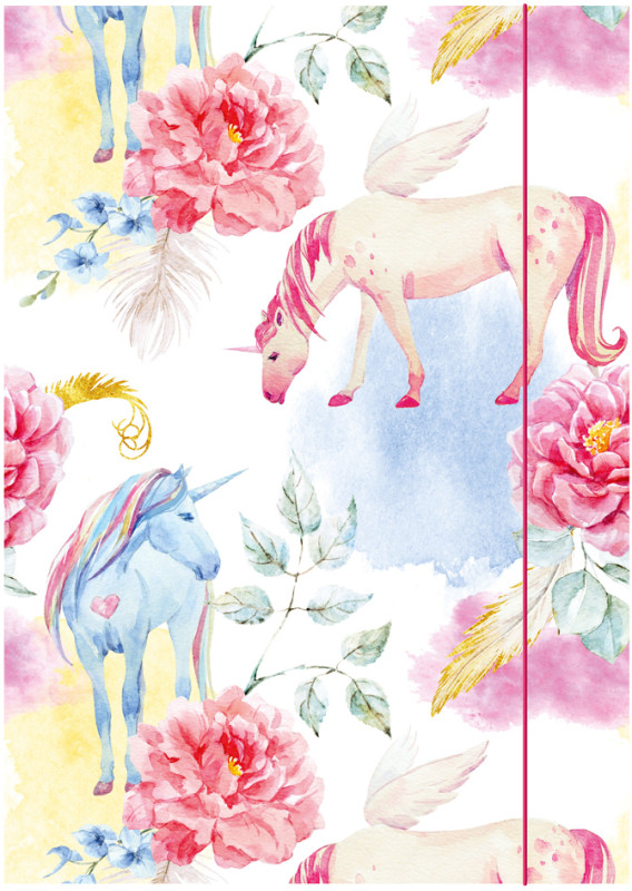 3 rabats, élastique de fermeture coloré,, en carton solide, dimensions: (L)310 x (H)440 mm,, pour des dessins et des documents en format A3,, impression intérieure et extérieure brillante, (45380)