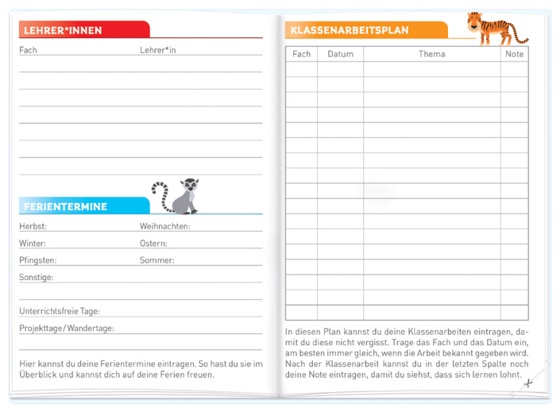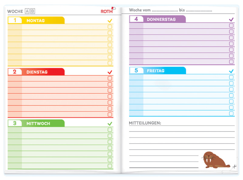 für Grundschule, mit Tagesfarben,, Format: DIN A5, 148 x 210 mm, 1 Woche / 2 Seiten,, A+B Wochen, Lernhilfen, mit Schutzumschlag, (89488),