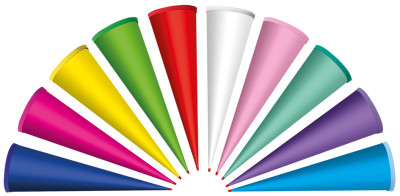 rund, aus Pappe, ohne Verschluss, mit stabiler ROTH-Spitze,, sortiert in den Farben: weiß, rot, ultramarinblau, grün,, gelb, pink, lila, rosa, mint und pazifikblau, beinhaltet: 10 Stück, (6670101)
