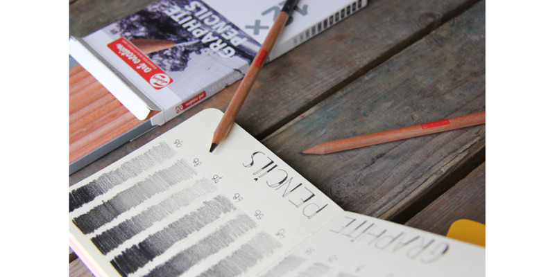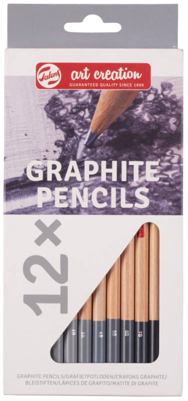 crayons graphite dans des degrés de dureté différentes, étui, en carton solide avec plateau pour ranger les crayons,, assorti dans les duretés : HB, B, 2B, 4B, 6B, 8B, (9028106M),