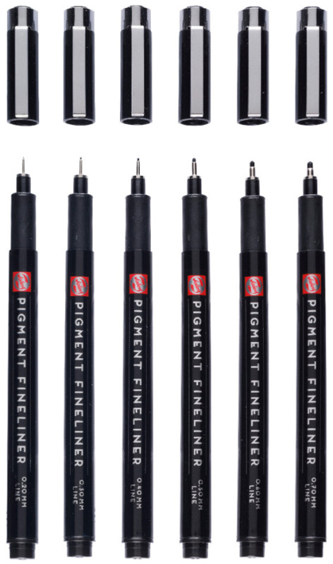 pigmentierte, permanente Tinte auf Wasserbasis, wasserfest, sortiert in den Strichstärken: 0,20 mm, 0,30 mm, 0,40 mm,, 0,50 mm, 0,60 mm, 0,70 mm (005 / 02 / 04 / 08 / 10 / 12), beinhaltet: 6 Stück, (90480961)