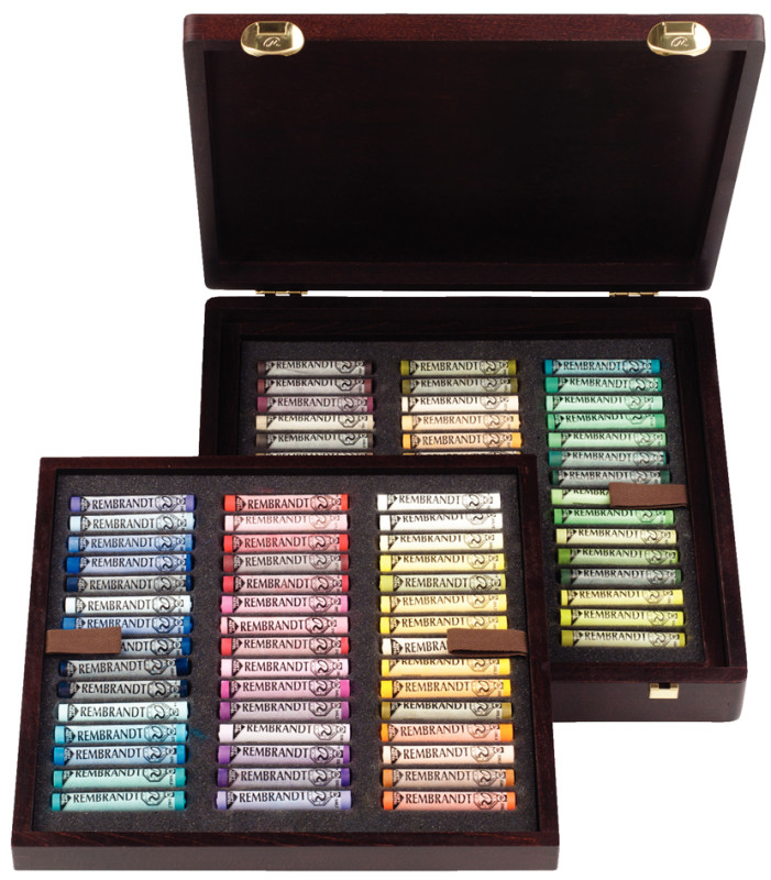 weiche Pastelle in höchster Qualität, farbig sortiert,, ganze Pastelle, Lieferung im hochwertigen Holzkasten,, Inhalt: 90 ganze Pastelle, (31814090),