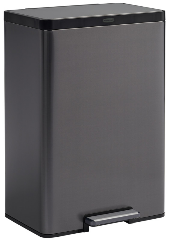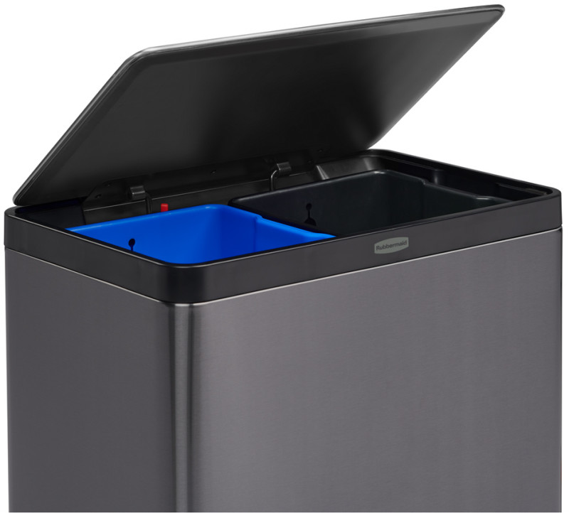 anthracite, en acier inoxydable, avec pédale sur le grand, côté, rectangulaire, fermeture lente du couvercle, avec 2, bacs de couleur, avec fonction de verrouillage,, dimensions: (L)600 x (P)431 x (H)727 mm, (2145985)